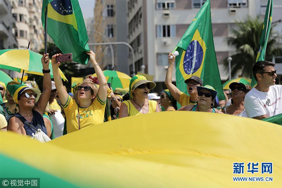 当地时间2019年4月7日,巴西里约热内卢,示威者发起反腐败集会,以支持巴西官方一项名为“洗车”(Car Wash)的反腐调查。(图片来源:视觉中国)