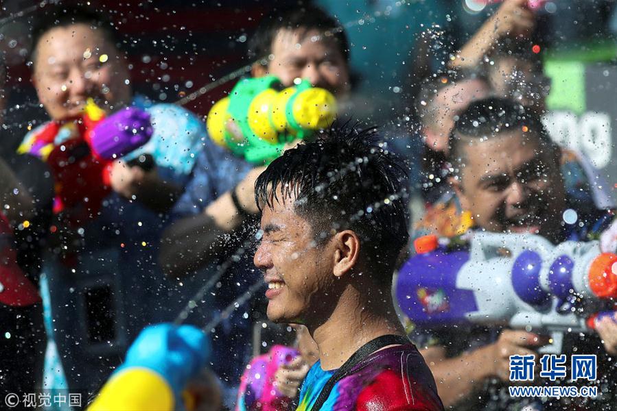 泰国民众庆祝宋干节 互相泼水展开水枪大战
