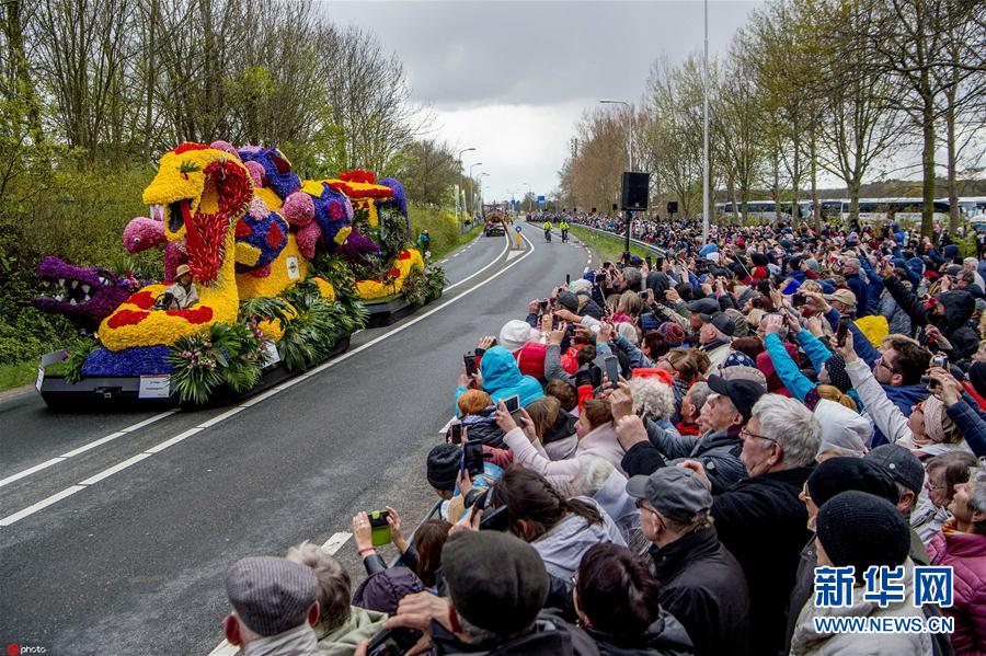 当地时间2019年4月13日,荷兰利瑟迎来一年一度的花车游行活动,各色花车鲜艳亮丽五彩缤纷十分夺目。(图片来源:东方IC)