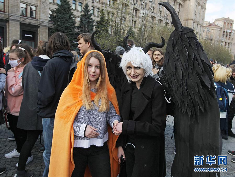 当地时间2019年4月14日,乌克兰基辅,当地民众参加动漫日庆祝活动。( 图片来源:视觉中国)