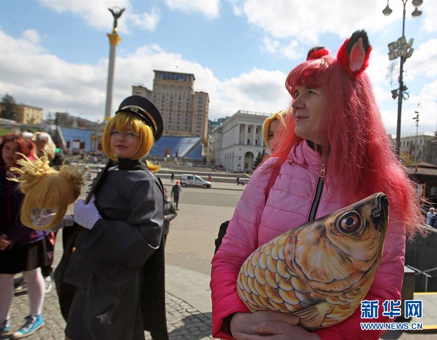 乌克兰民众举行动漫日庆祝活动 民众扮卡通人物街头游行