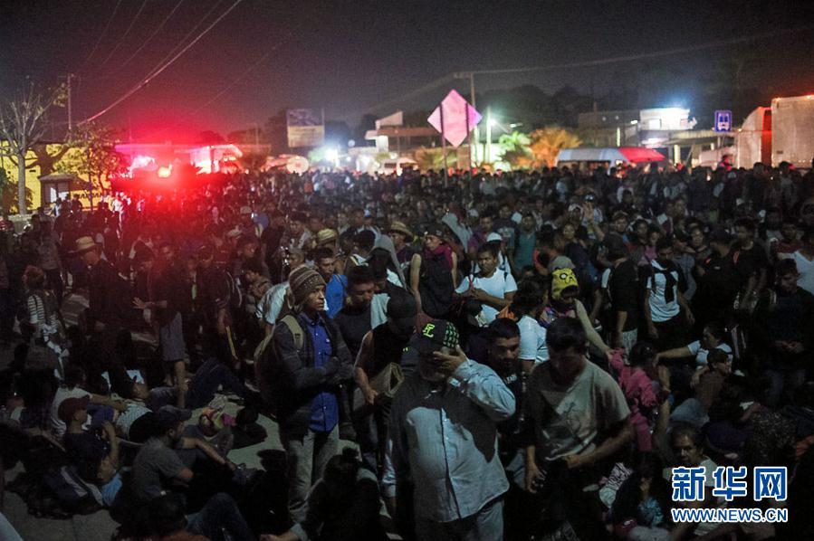 当地时间2019年4月15日,墨西哥恰帕斯州塔帕丘拉,一支约2500人的中美洲移民大篷车队抵达当地,希望通过美墨边境进入美国。 (图片来源:视觉中国)