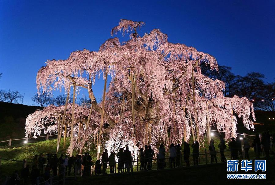 当地时间2019年4月16日,日本福岛三春町,“三春泷樱”迎来花期,盛开的樱花攀满枝头如同瀑布倾泻而下。(图片来源:视觉中国)