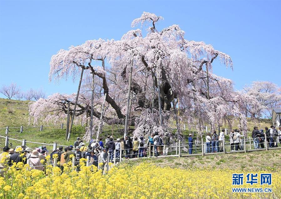 当地时间2019年4月16日,日本福岛三春町,“三春泷樱”迎来花期,盛开的樱花攀满枝头如同瀑布倾泻而下。(图片来源:视觉中国)