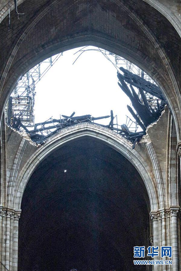 当地时间2019年4月16日,法国巴黎,法国消防部门宣布巴黎圣母院大火被完全扑灭。巴黎圣母院的大部分顶部被烧毁。火灾过后,大教堂内部四处散落着烧焦的碎片。(图片来源:视觉中国)