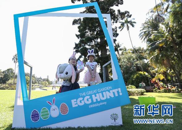 4月21日,在澳大利亚悉尼皇家植物园,游客在寻找彩蛋活动中留影。新华社记者 白雪飞 摄