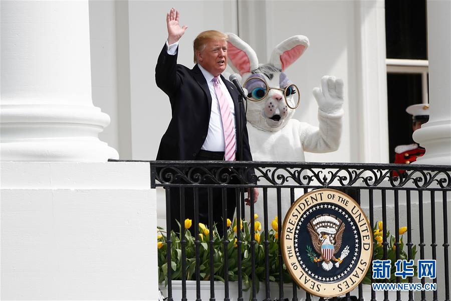 4月22日,在美国首都华盛顿白宫,美国总统特朗在复活节“滚彩蛋”活动上讲话。美国一年一度的白宫复活节“滚彩蛋”活动22日在白宫南草坪举行,美国总统特朗普偕夫人梅拉尼娅出席并与民众互动。新华社发(沈霆 摄)