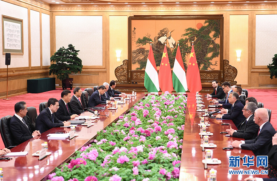 欧尔班表示,匈牙利政府和人民珍视匈中两国建交70年来结下的非凡友谊。我们祝贺中国发展取得的巨大成就。10年前我就意识到,匈牙利的未来很大程度上取决于同中国的关系。匈牙利坚信,在当前复杂多变的世界中,中国将发挥更积极作用。“一带一路”不是威胁,是机遇,匈方坚定支持,积极加入。匈牙利看好中国的高技术发展,欢迎中国投资。匈方愿通过中国-中东欧合作平台推动欧中整体关系的发展。