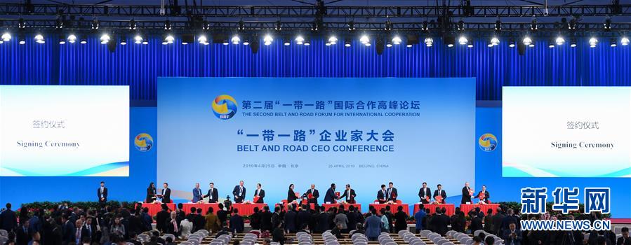 4月25日,首届“一带一路”企业家大会在北京举行。这是签约仪式现场。新华社记者 陈晔华 摄
