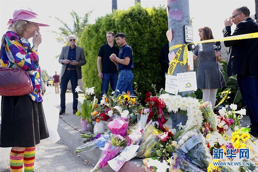 美犹太教堂枪击案致1死3伤 民众献花悼念逝者