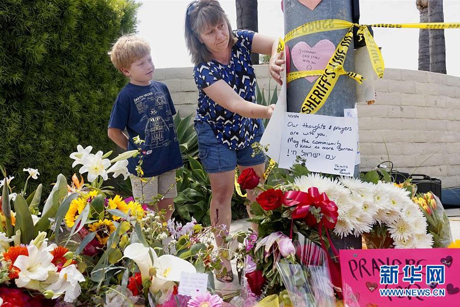 美犹太教堂枪击案致1死3伤 民众献花悼念逝者