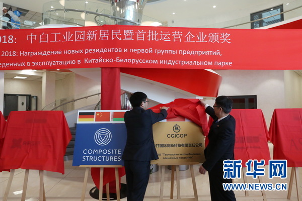 2018年5月11日,甘肃省首家入驻中白工业园的项目——甘肃建投集团(中甘国际)正式揭牌。新华网记者 魏忠杰 摄
