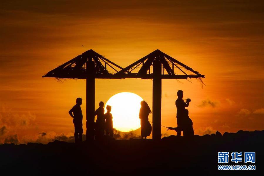 当地时间5月3日,印尼亚齐省,民众在海滩上欣赏黄昏美景。 (图片来源:视觉中国)