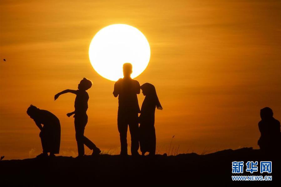 当地时间5月3日,印尼亚齐省,民众在海滩上欣赏黄昏美景。 (图片来源:视觉中国)