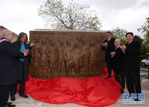 5月4日,为纪念留法勤工俭学运动100周年,大型雕塑《百年丰碑》在法国蒙达尔纪市邓小平广场落成。这座高2.9米、宽4.65米的雕塑,以浮雕形式,呈现十多位留法勤工俭学代表人物。