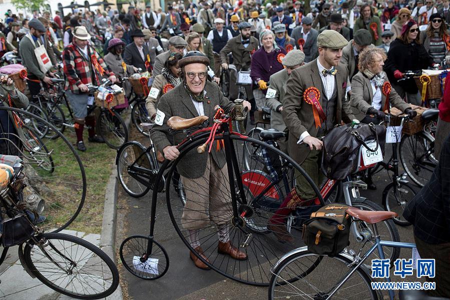 伦敦举办年度自行车复古骑行 民众展示正宗“英伦范儿”