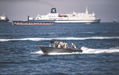 4月30日,伊朗士兵在霍尔木兹海峡巡逻。新华社发