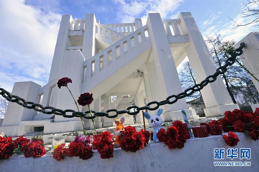 当地时间2019年5月6日,俄罗斯摩尔曼斯克,当地民众为俄罗斯国际航空公司客机(SSJ-100)迫降事故中遇难者哀悼。(图片来源:视觉中国)