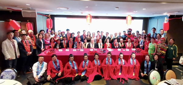 主办方代表致辞(从左到右依次为:新南威尔士州天后宫创会荣誉主席刁振谋、华人联谊会会长吴贵光、中华文化世界之窗总会主席郑丽莉)(图片由主办方提供)