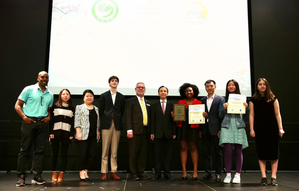 5月4日,在美国瓦尔普莱索大学,参赛选手与大赛裁判和颁奖嘉宾合影。(图片由大赛组委会提供)