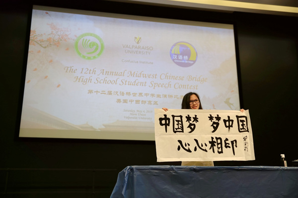 今年是瓦尔普莱索大学孔子学院连续第三年举办美国中西部地区“汉语桥”中学生中文演讲比赛。该赛事迄今已成功举办12届,参赛选手的覆盖面越来越广,竞赛汉语水平越来越高,可观性也越来越强,反映出美国中西部各州对中文教学的重视和支持,也受到参赛学生家长、老师和学校等多方好评。