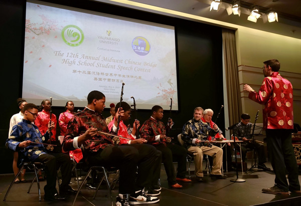 5月4日,在美国瓦尔普莱索大学,参赛选手进行中华才艺展示。(图片由大赛组委会提供)