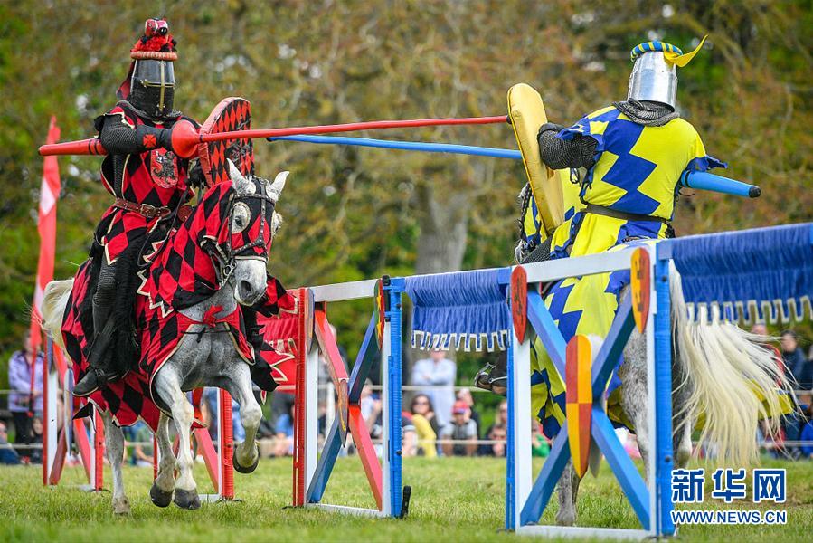 当地时间2019年5月12日,英国格洛斯特郡,当地的萨德雷城堡举行年度马上长枪比武活动。(图片来源:视觉中国)