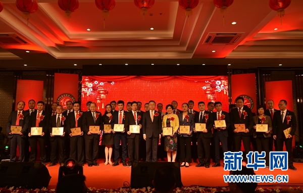 庆典活动中,张佐大使为新一届会长庄立峰颁发会长印信,李波向孟加拉国华联会副会长及会董颁发了证书。