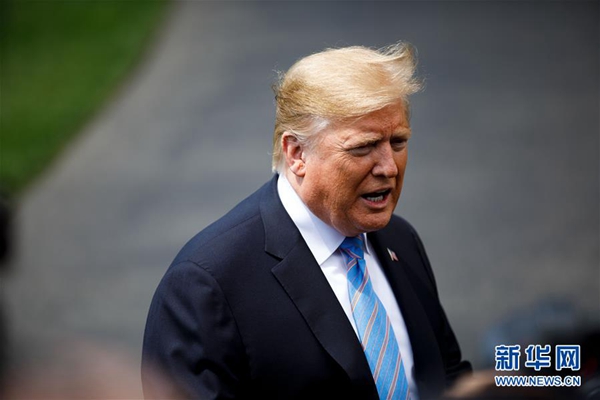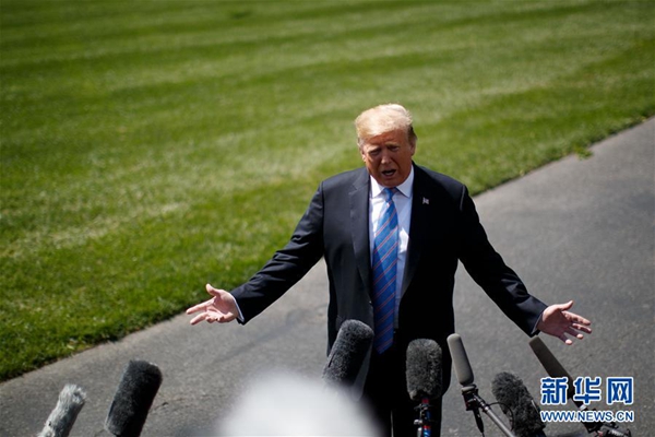 5月14日,在美国华盛顿白宫南草坪,美国总统特朗普回答记者提问。新华社发(沈霆 摄)