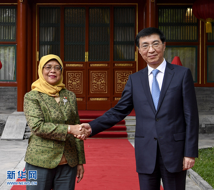 新华社北京5月15日电(记者郑明达)中共中央政治局常委、中央书记处书记王沪宁15日在钓鱼台国宾馆会见新加坡总统哈莉玛。