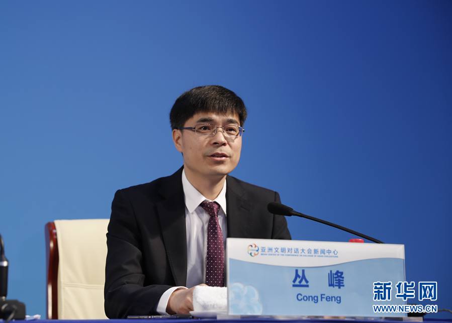 5月16日下午,亚洲文明活动周特色亮点集体采访在国家会议中心举行。图为成都市委宣传部副部长、市人民政府新闻办公室主任丛峰在介绍相关情况。 新华网记者 郭小天 摄