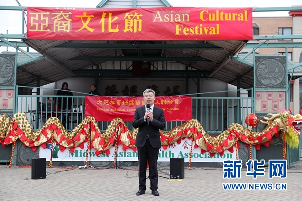 新华网芝加哥5月16日电(记者汪平)大芝加哥地区华侨华人联合会(华联会)和美亚健康协会近日在芝加哥中国城华埠广场(也称南华埠广场)联合举办亚裔文化节,以庆祝一年一度的美国亚裔传统文化月。