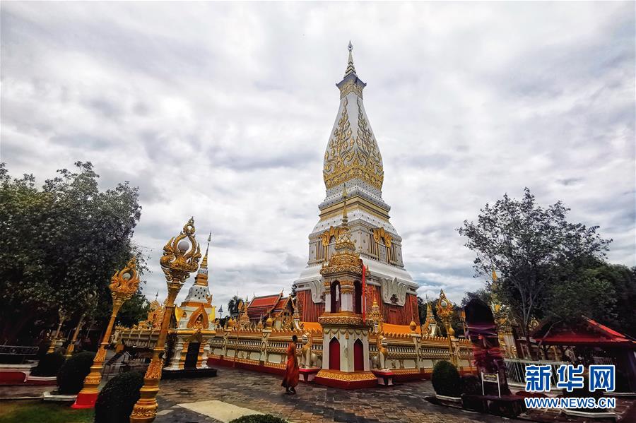这是5月9日在泰国那空拍侬府拍摄的老挝风格的巴侬舍利塔。新华社记者郭鑫惠摄