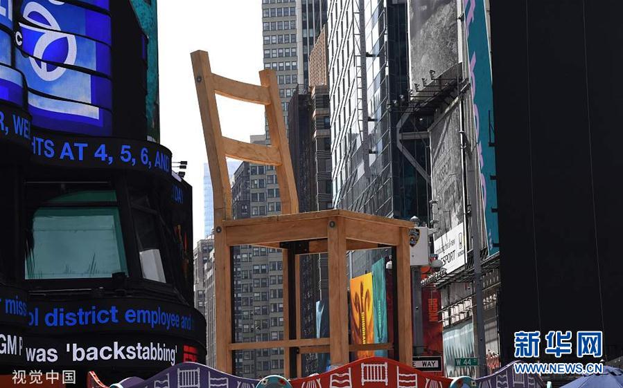 当地时间2019年5月20日,美国纽约,当地举办一年一度的设计庆典。一把名为“Chairousel”的26英尺(约7.9米)高的椅子在时报广场被展示,Chairousel是16个艺术装置之一。本次设计庆典的展台从42大道延伸至47大道,横跨5个广场,为杰出的、新兴的设计师提供展示作品的机会。(图片来源:视觉中国)