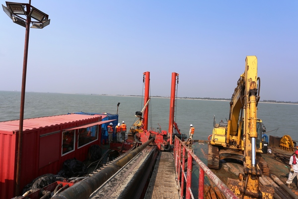 孟加拉湾上的海上施工船。(图片由项目部提供)