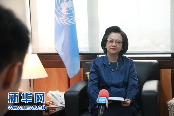 5月14日,联合国亚洲及太平洋经济社会委员会执行秘书阿米达·阿利斯夏巴纳在泰国曼谷接受新华社记者采访。 联合国亚洲及太平洋经济社会委员会执行秘书阿米达·阿利斯夏巴纳日前在曼谷接受新华社记者采访时说,70年来中国取得了全方位的发展成就,并给亚太地区带来积极影响。 新华社发