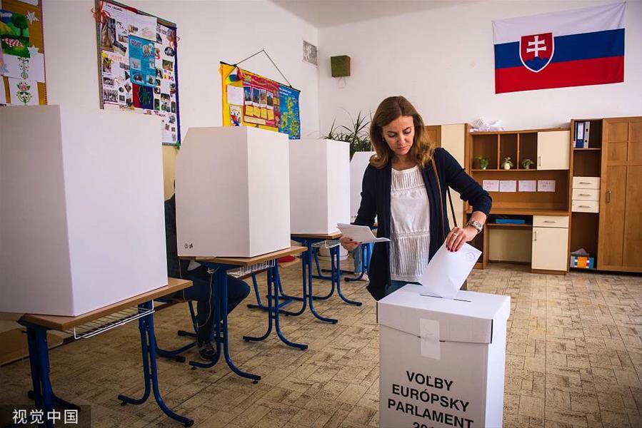 当地时间2019年5月25日,斯洛伐克伯拉第斯拉瓦,欧洲议会选举期间,选民在投票站投票。(图片来源:视觉中国)