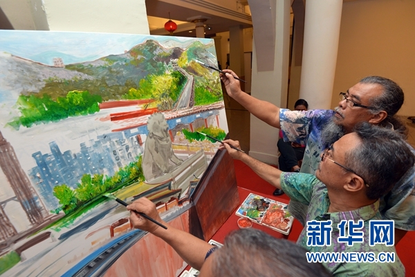 图片展上,马来画家共绘马中友好。张纹综 摄