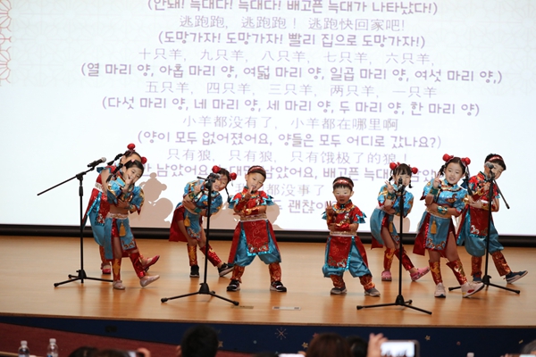 第十五届“龙庆峡杯”中华缘大赛决赛25日在位于首尔的韩国国会“议员会馆”举行。图为参赛韩国幼儿园选手表演。(主办方供图)