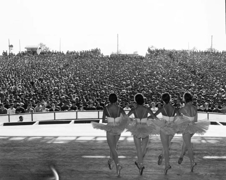 ↑1956年,中国人民解放军歌舞团在莫斯科演出。(塔斯社稿)