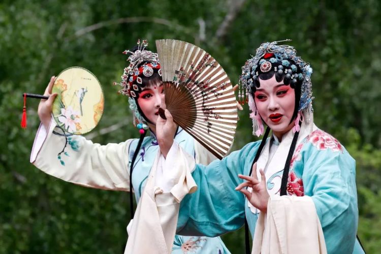 ↑上海张军昆曲艺术中心演员在莫斯科契诃夫国际戏剧节上表演《牡丹亭》。 (2019年,阿尔乔姆·格奥达基扬)