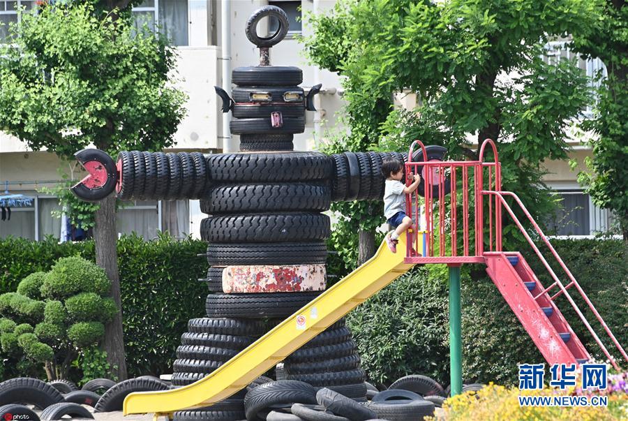 当地时间2019年6月6日,日本东京,东京轮胎公园迎来建园50周年,这个公园由3000个废弃的轮胎搭建而成。园内8米高轮胎组成的