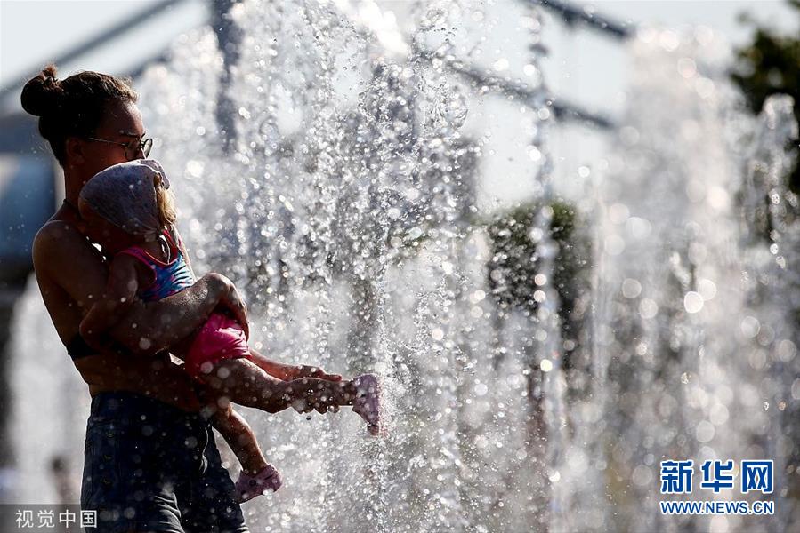 莫斯科遇高温天气 民众喷泉戏水降温