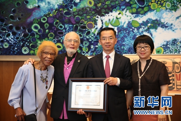 中国驻加拿大大使卢沙野在授予布莱德夫妇捐赠证书仪式上致辞,高度赞扬布莱德夫妇为推进中加关系发展所作的贡献,希望有更多像他们这样的有识之士为中加关系健康发展奠定坚实的民意基础。