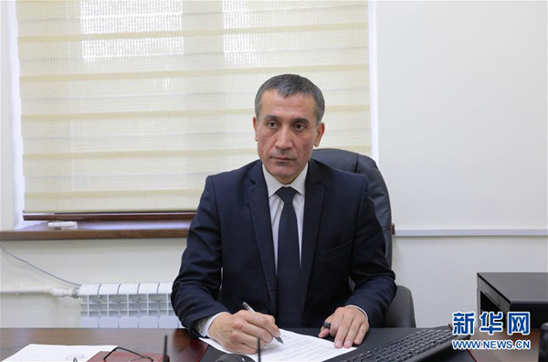 5月31日,乌兹别克斯坦最高会议参议院(议会上院)议员、乌兹别克斯坦上海合作组织(上合组织)民间外交中心主任纳扎罗夫在乌首都塔什干办公室工作。新华社发(扎法尔 摄)