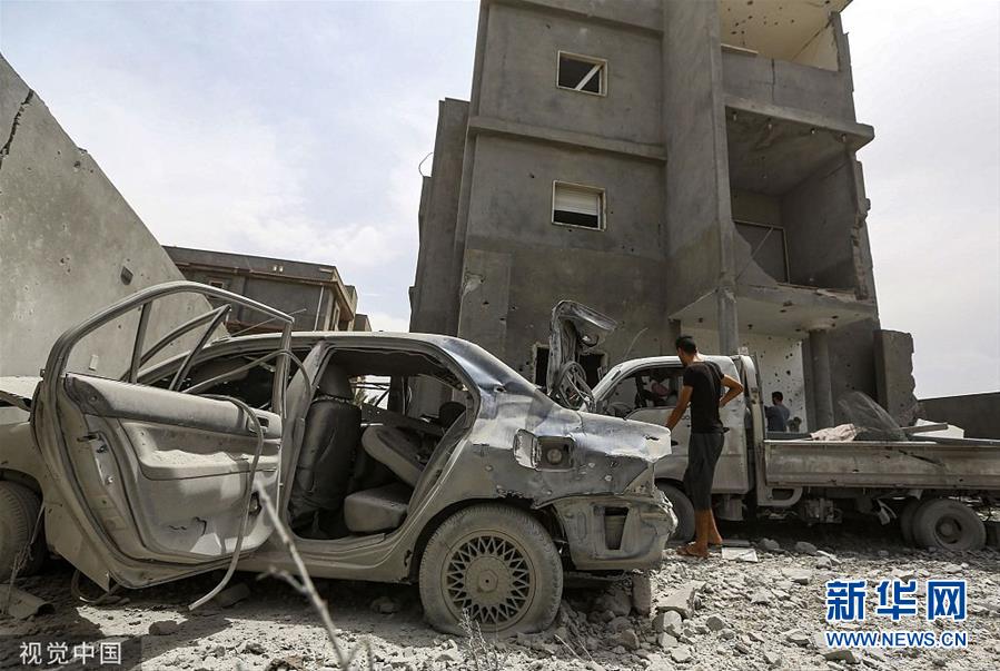 利比亚首都南部遭空袭 建筑变成一片废墟