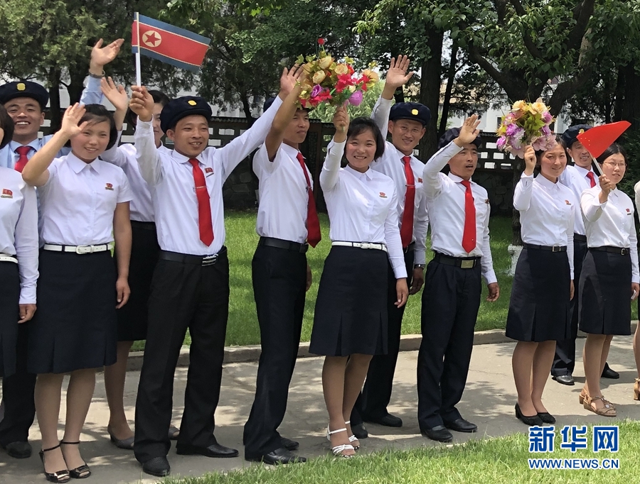 6月20日,中共中央总书记、国家主席习近平乘专机抵达平壤,开始对朝鲜民主主义人民共和国进行国事访问。这是朝鲜民众在平壤街头热烈欢迎习近平。新华社记者 江亚平 摄