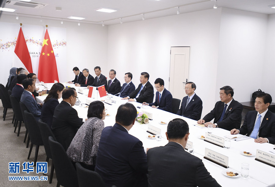 6月28日,国家主席习近平在大阪会见印度尼西亚总统佐科。 新华社记者 燕雁 摄
