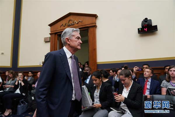 7月10日,在美国华盛顿,美联储主席鲍威尔出席美国众议院金融服务委员会听证会。新华社记者 刘杰 摄
