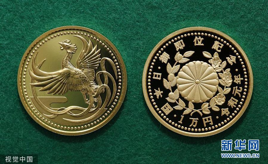 当地时间7月11日,日本大阪,日本为纪念德仁天皇登基而推出的1万日元金币。“令和元年”硬币沿用了以往的外观设计。(图片来源:视觉中国)
